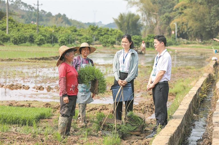 广西壮族自治区梧州市龙圩区纪委监委紧盯惠农政策落实、农资保障供应等情况,组织纪检监察干部下沉一线,督促相关职能部门履职尽责,以有力监督护航春耕生产有序推进。图为近日,该区纪检监察干部在大坡镇交村村向群众了解有关情况。林志清 摄