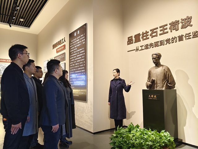 党员干部在南京江北新区红色广场参观学习王荷波的先进事迹,传承红色基因,砥砺奋进力量。 南京江北新区纪检监察工委供图
