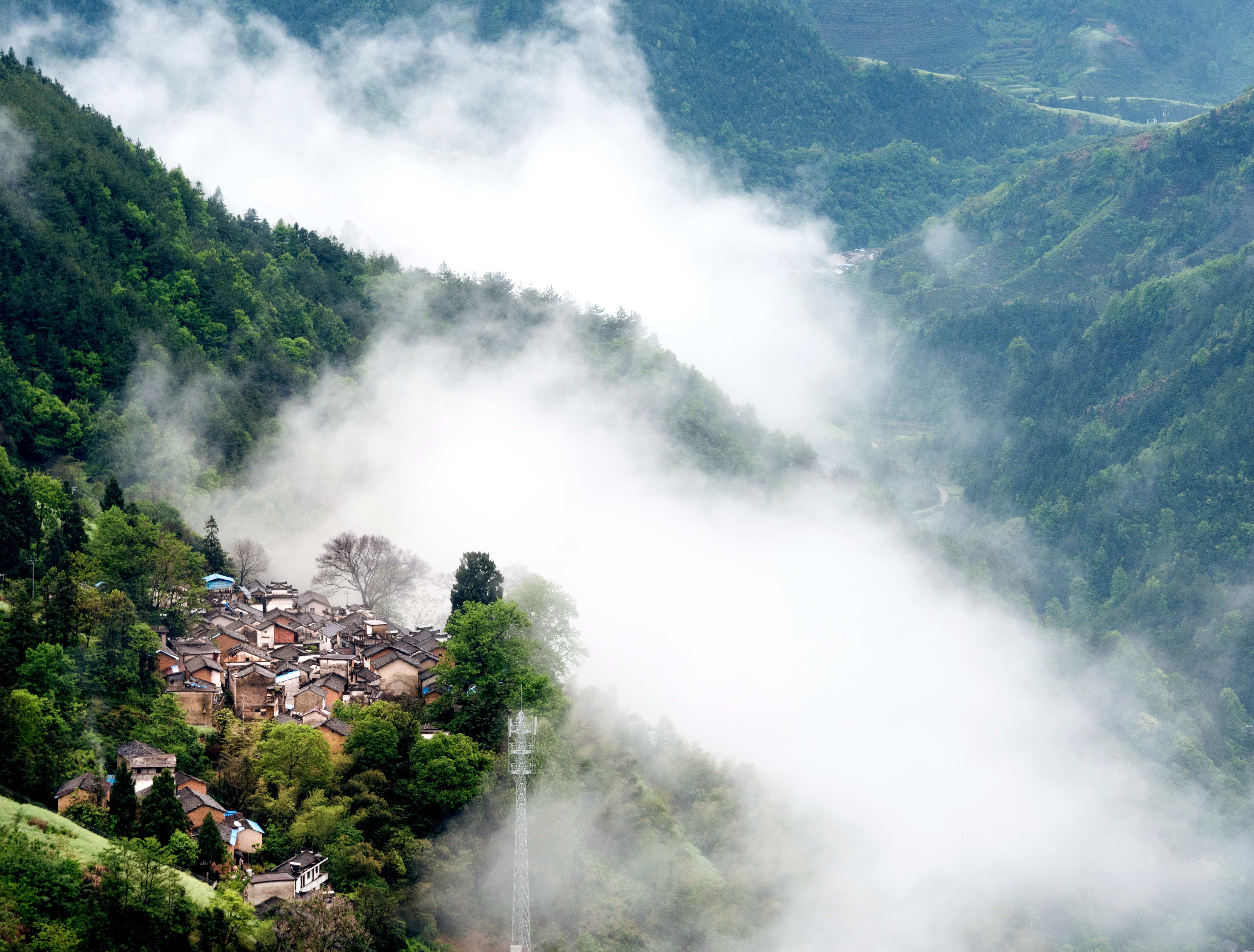 山风穿过林梢,带着清明的雨意。青瓦褐墙的老屋静静坐落在山间,像被时光藏起的旧梦。(安徽省宣城市宣州区纪委监委供 李建华 摄)
