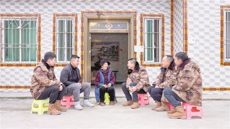 图为中央纪委国家监委机关挂职干部、时任马边彝族自治县小谷溪村第一书记穆文杰(右三)走访脱贫户娄苟巫果,了解生活近况。唐果 摄