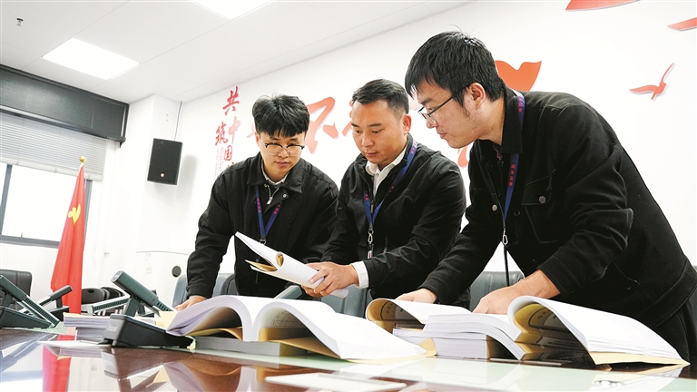 广西壮族自治区桂林市永福县纪委监委对违规吃喝、违规收送礼品礼金等“四风”问题,坚持查缘由、查性质、查关系网、查资金流“四查清”,揪住细节“线头”,深挖细查背后的腐败利益链条。图为该县纪检监察干部在召开案情分析会。 贾振华 摄