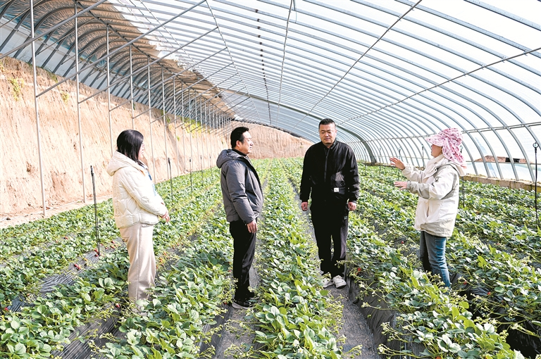 甘肃省榆中县纪委监委聚焦惠农政策落实等重点环节强化监督检查,切实维护群众利益。图为近日,该县纪委监委工作人员前往夏官营镇孙家营村草莓种植基地走访了解有关情况。张玉海 摄
