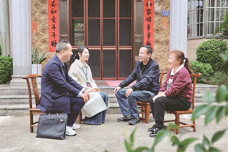 福建省龙岩市新罗区纪委监委聚焦农村集体“三资”管理关键环节,深化“阳光公开”机制,切实保障群众的知情权、参与权和监督权。图为该区纪检监察干部在龙门街道连坑村向群众了解村集体资产阳光公开情况。陈巧玲 摄