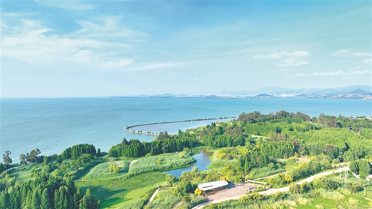 近年来,昆明市晋宁区持续推进滇池沿岸湿地修复与保护,滇池南岸湿地的生物多样性持续提升,吸引了越来越多的水鸟栖息繁衍。图为绿意盎然的南滇池国家湿地公园。宋光旭 摄