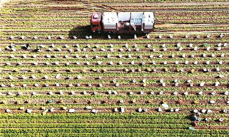 近日,河南省尉氏县张市镇张市村特色种植合作社的员工在种植园采收。新华社发(李新义 摄)