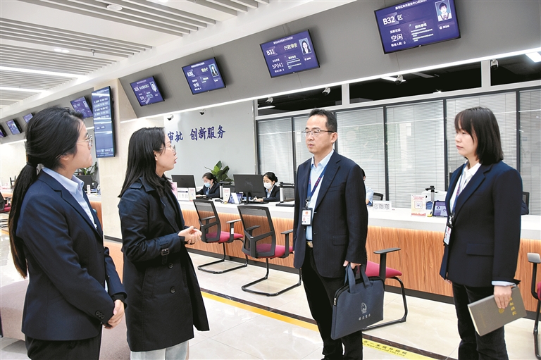 陕西省西安市纪委监委聚焦政策落实不到位、审批许可不作为、监管执法不规范、政商交往不廉洁等问题深化治理,靶向纠治损害营商环境的不正之风和腐败问题。图为近日,该市雁塔区纪委监委干部在区政务服务中心走访了解有关情况。孙道伟 摄