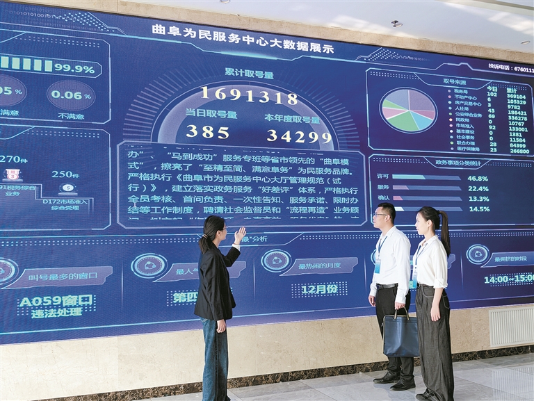 山东省曲阜市纪委监委依托政务服务中心大数据平台,聚焦干部作风、服务效能、廉洁用权等方面,精准筛查吃拿卡要、推诿扯皮、违规审批等问题线索,一体推进风腐同查同治。张敏 摄