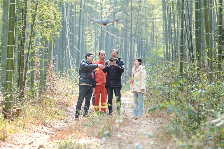 安徽省广德市纪委监委将生态环境保护作为政治监督重要内容,强化一线走访和监督检查,压紧压实生态环保责任。图为该市纪检监察干部联合相关职能部门深入林区了解有关情况。 郑展鹏 摄