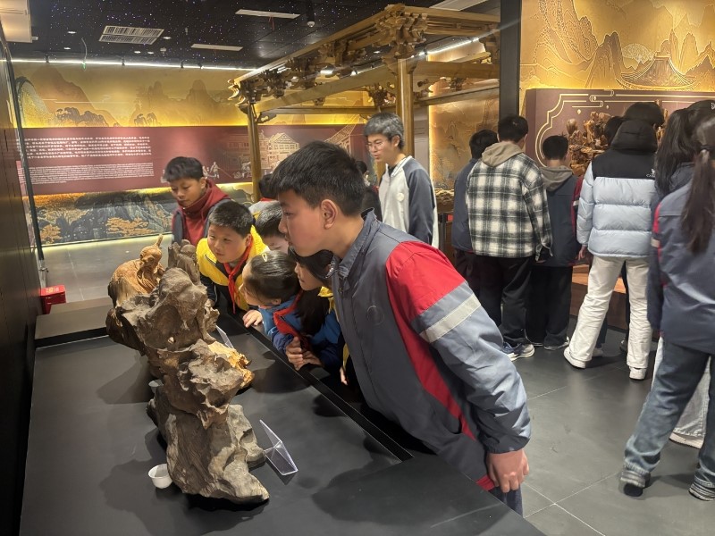 为了让学生更直观地领略雕刻文化的魅力,学校组织学生每月前往雕刻博物馆和雕刻一条街各雕刻大师的工作室开展研学活动。在雕刻博物馆中,学生们漫步于历史长廊,欣赏着一件件精美绝伦的雕刻作品,从古老的传统雕刻到现代创新之作,每一件作品都仿佛在诉说着余江雕刻文化的发展历程。学生们在参观过程中,不仅惊叹于雕刻大师们的高超技艺,更深入了解了雕刻背后的文化内涵和历史故事。而在雕刻一条街的大师工作室里,学生们得以近距离观察雕刻大师们的创作过程,感受他们专注投入的工作态度和精益求精的工匠精神。大师们现场的指导和讲解,让学生们对雕刻技艺有了更深刻的理解和掌握。这种身临其境的研学活动,将课堂教学与实践体验相结合,极大地拓宽了学生的视野,增强了他们对雕刻文化的认同感和传承责任感,收到较好的效果。