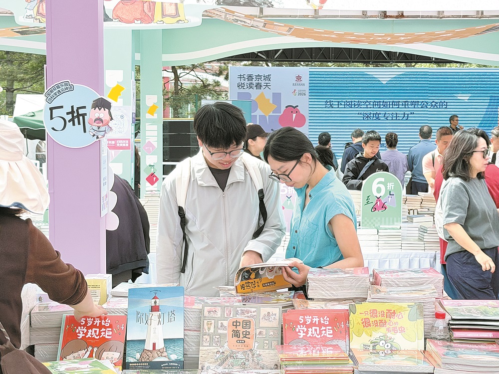 首个“全民阅读活动周”前夕,2026年春季北京书市开幕。图为市民在朝阳公园专注淘书、买书、看书。李灵娜 摄
