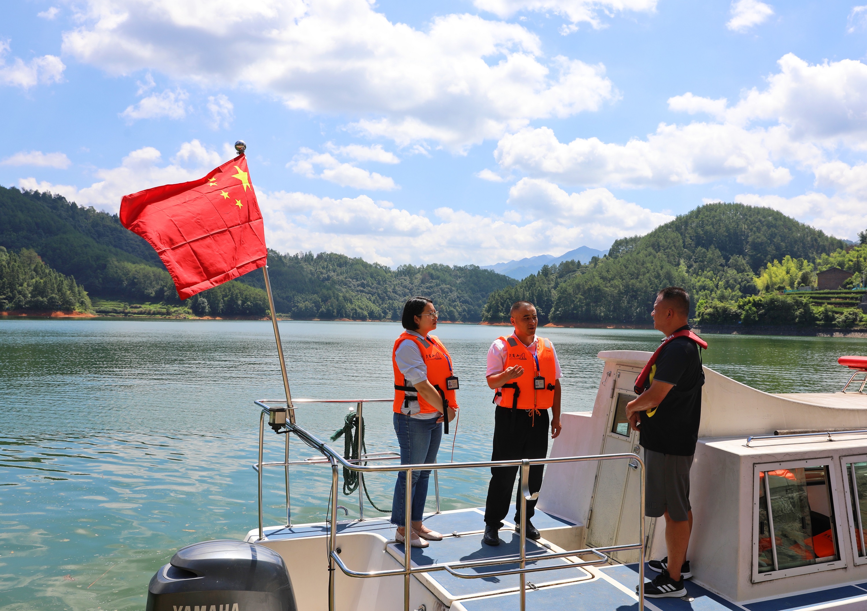 福建省武夷山市纪委监委将生态环境保护作为政治监督的一项重要任务,对生态领域不担当不作为等问题精准发现、及时纠偏、严肃查处。图为该市纪检监察干部在东溪水库了解水域生态修复情况,压紧压实生态环境保护整改责任。杨帅 摄