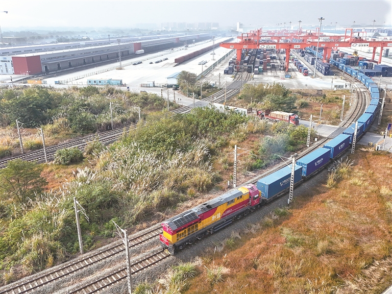 “十五五”时期,国际形势演变深刻影响国内发展,我国发展处于战略机遇和风险挑战并存、不确定难预料因素增多的时期。我们必须保持战略定力,增强必胜信心,以历史主动精神克难关、战风险、迎挑战,奋力开创中国式现代化建设新局面。图为日前,满载货物的中欧班列从成都青白江区国际铁路港发车。新华社记者 王曦 摄
