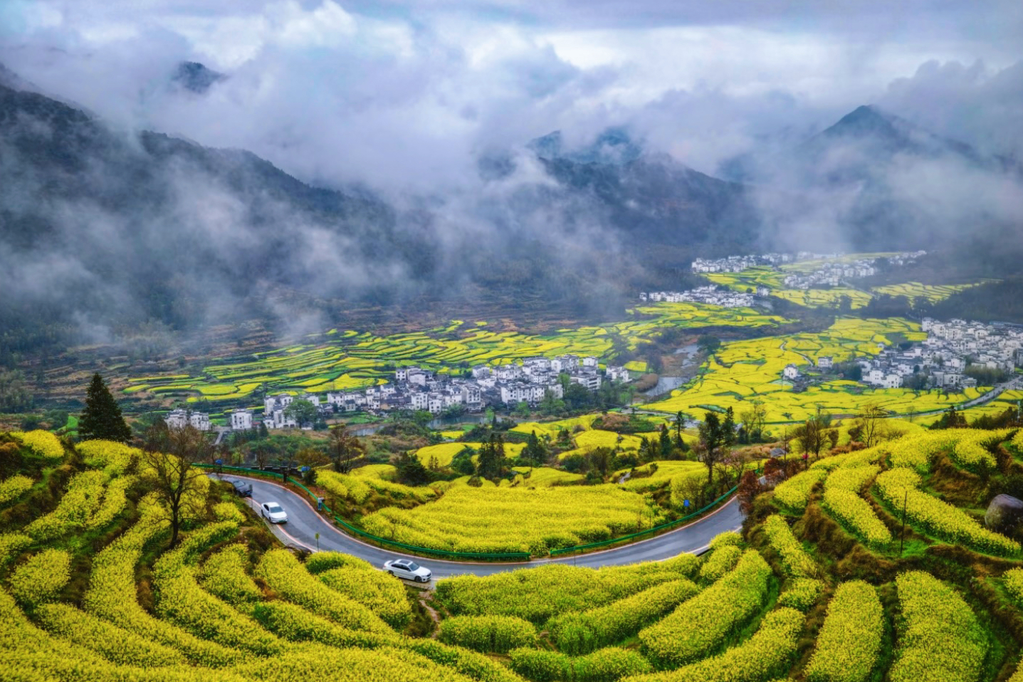 清明时节的江西婺源烟雨朦胧,远山被轻纱般的云雾轻笼,黛色轮廓若隐若现。白墙黛瓦的古村嵌在灿黄的油菜花田中,黄绿交织,烟雨浸润着草木,江南春日的诗意在这一方乡野间缓缓流淌。(南昌小蓝经开区纪检监察工委供 吕寅妃 摄)