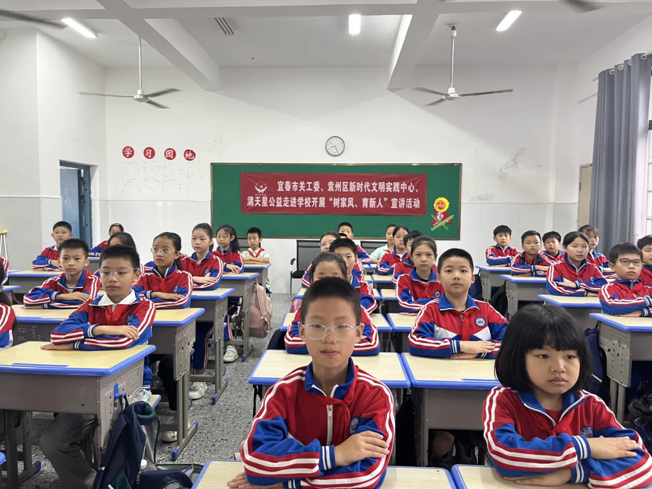 市关工委“薪火相传”关爱报告团成员、袁州区关工委常务副主任袁小虎以家乡名人为引,作了《袁州院士江元生的家风》宣讲。他详细介绍了出生于袁州的著名物理化学家、中国科学院院士江元生教授的成长经历、治学精神及其家风传承,用身边鲜活的榜样激励同学们见贤思齐,从小树立远大志向,培养严谨求实的优良品格。