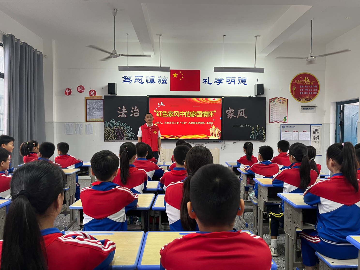 为深入贯彻落实习近平总书记关于注重家庭家教家风建设的重要论述,树立良好家风,培育青少年家国情怀,9月25日上午,江西省宜春市、袁州区关工委“五老”关爱报告团走进宜春市袁山学校课堂!为我校师生带来了一场精彩纷呈、意义深远的主题教育宣讲活动。
