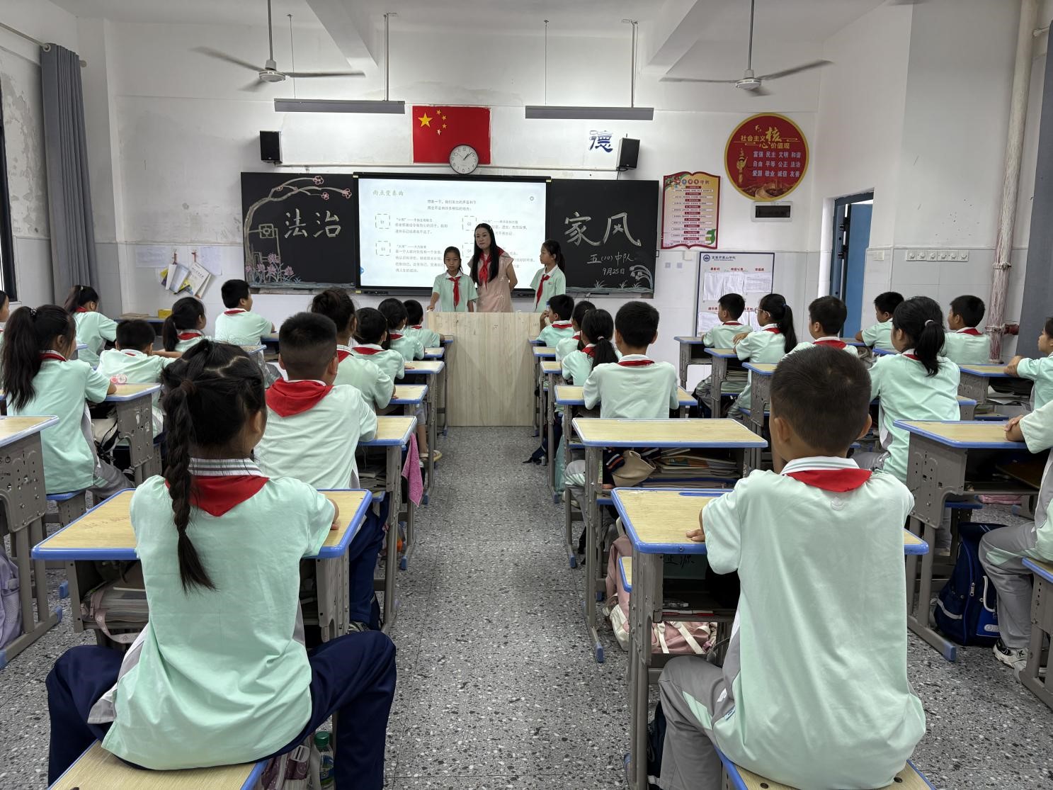 宜春市月芽儿心理咨询团副团长江红以 《铭记抗战精神,守护心灵成长》为题,为五年级学生带来一堂别开生面的心理健康课。课程从谈论“9.3阅兵”的感受与意义出发,引导学生思考自强精神。随后,通过“雨点变奏曲”等互动游戏,孩子们在欢乐中体验情绪变化与团队协作。江老师进而围绕“我是谁”、“如何认识自己”等主题,巧妙地将铭记历史、自强不息的抗战精神与认识自我、调整心态的心理健康知识相结合,教导孩子们学会制定计划、寻求帮助,以积极心态面对成长。这堂课不仅是一次历史教育,更是一次深刻的心灵滋养。