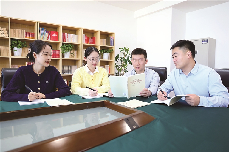 开展树立和践行正确政绩观学习教育,纪检监察机关既是组织参与者,又是受教育者,既要担好“分内之责”,服务保障好全党学习教育,又要走好“第一方阵”,抓好自身学习教育。图为近日,黑龙江省牡丹江市纪委监委青年理论学习小组开展圆桌围读活动,引导党员干部在深学细悟中筑牢根基,在查摆整改中锤炼党性,在实干笃行中展现作为。 马广莉 摄